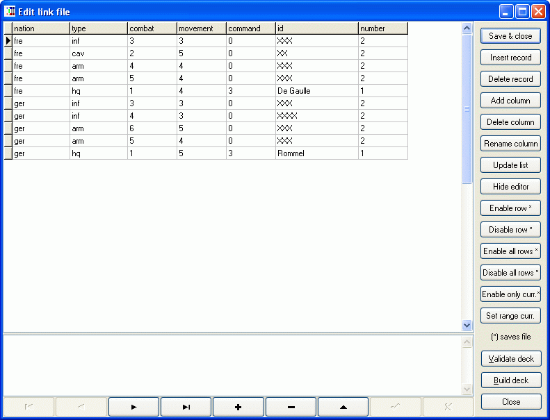 There are various buttons for (un)commenting rows in linked files. You can also render a single row (and thus a single card) with only a double-click on it. This is a screenshot of the editing window: